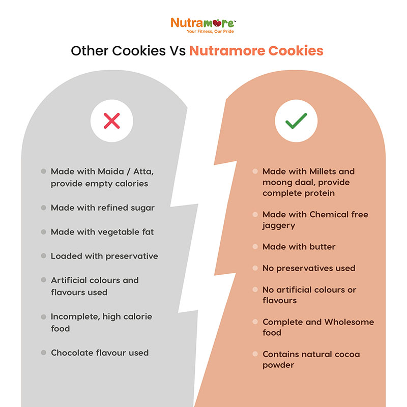 Bajra Flour, Green Gram Flour, Chemical free Jaggery, Butter, Cocoa Powder, Chocochips, Leavening Agents (E500 II, 503 II)