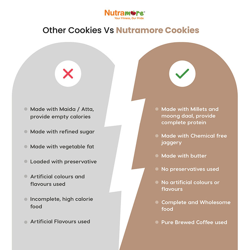 - Perfect Anytime Snack – Crafted with care using a blend of nutritious millets and the rich essence of coffee, these cookies offer a delightful crunch and a burst of delicious taste in every bite. Wholesome snack to start your day, mid-day snack for tiffin, on the go snacking.